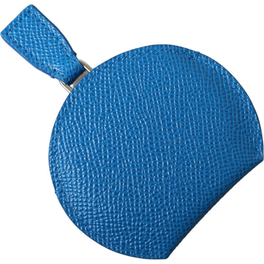 Dolce & Gabbana Blue Calfskin Leather Round Logo Hand Mirror Holder