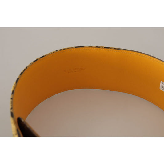 Dolce & Gabbana Yellow Leather Silver Tone Logo Metal Buckle Belt