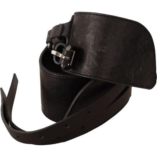 Costume National Belt Black Leather Silver Buckle Waist Belt