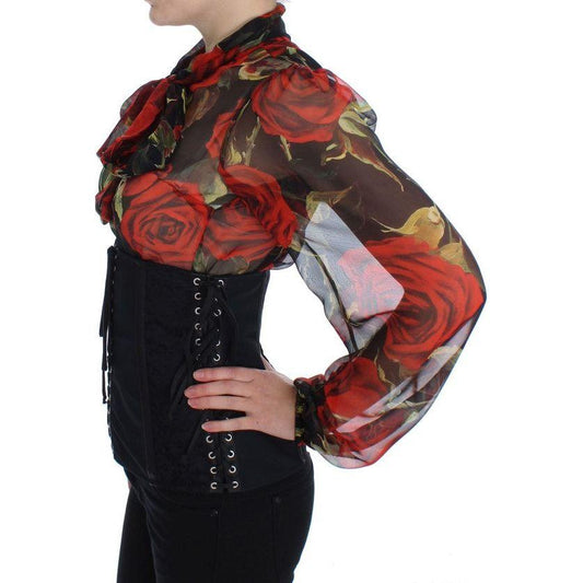 Dolce & Gabbana Red Leather Roses Floral Silver Waist Belt