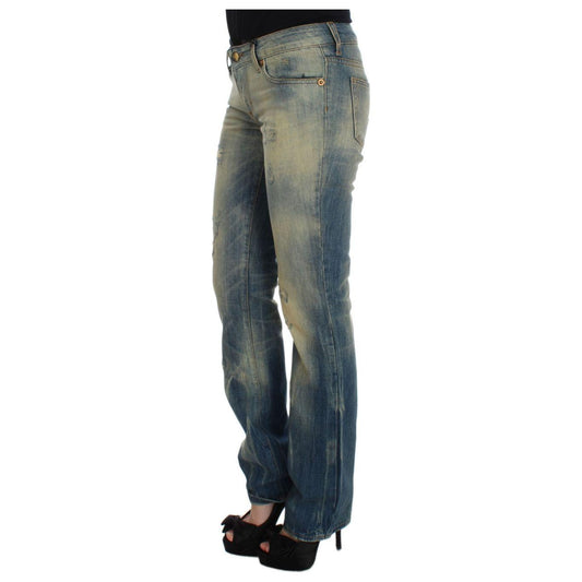 Cavalli Blue Cotton Straight Fit Stretch Jeans