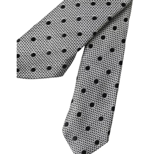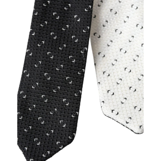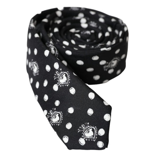 Dolce & Gabbana Black White Dot Fantasy Silk Adjustable Men Tie