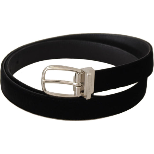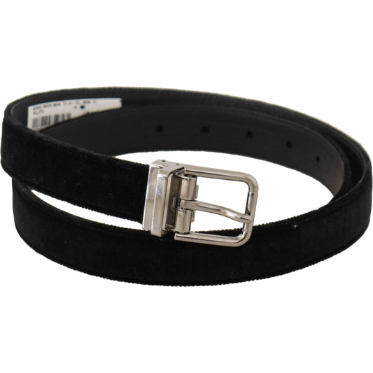 Dolce & Gabbana Black Classic Velvet Silver Tone Metal Buckle Belt
