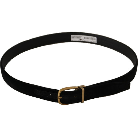 Dolce & Gabbana Black Velvet Leather Gold Tone Metal Buckle Belt