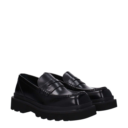 Dolce & Gabbana Black Leather Slip-On Loafers