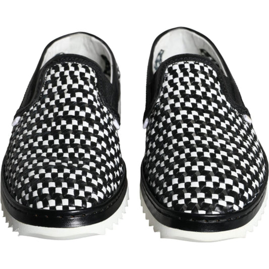 Dolce & Gabbana Black White Weaved Slip On Men Loafers Shoes