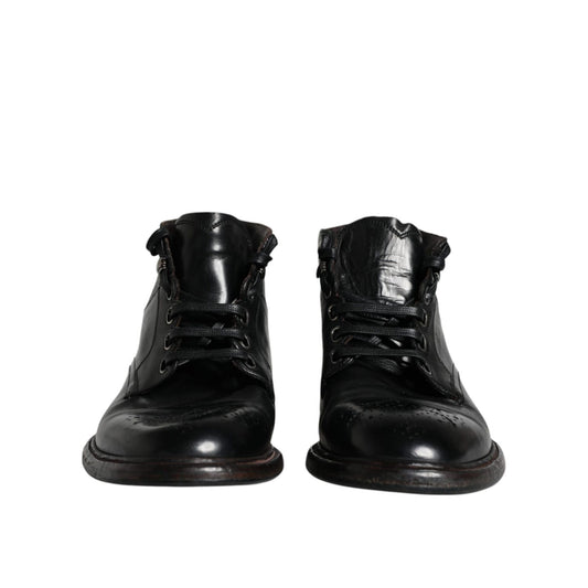 Dolce & Gabbana Black Leather Men Short Boots Lace Up Shoes