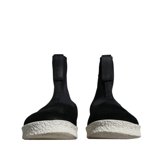 Alexander McQueen Black White Neoprene Takeshi Mid Calf Boots Shoes