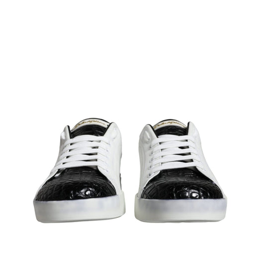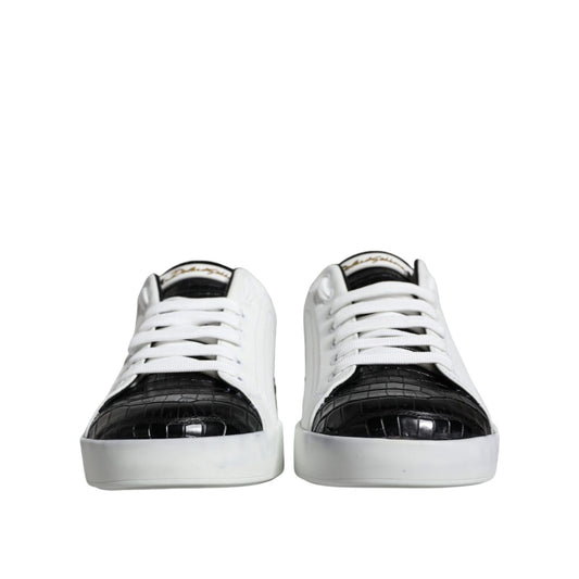 Dolce & Gabbana Black Leather Logo Portofino Sneaker Shoes