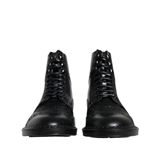 Dolce & Gabbana Black Leather Lace Up Mid Calf Boots Shoes