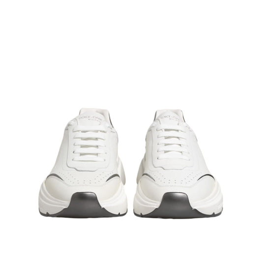 Dolce & Gabbana White Silver DAYMASTER Leather Sneakers Shoes