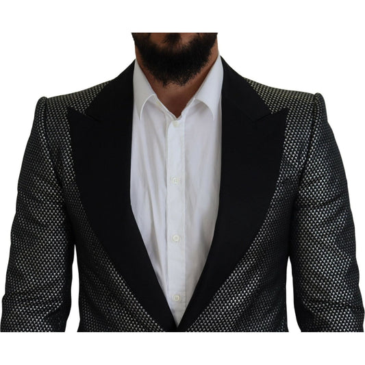 Dolce & Gabbana Black Silver Jacquard Slim Fit Jacket Blazer