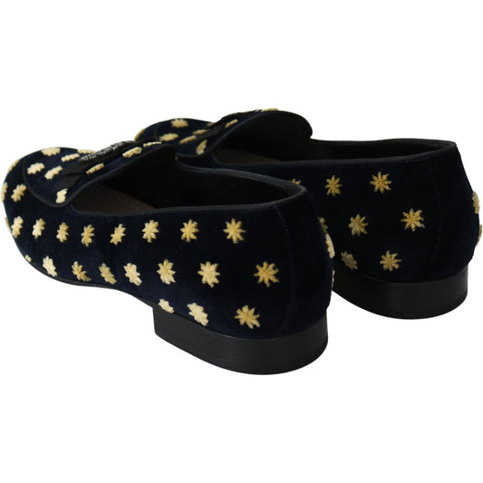 Dolce & Gabbana Blue Velvet Crown Slippers Loafers Shoes