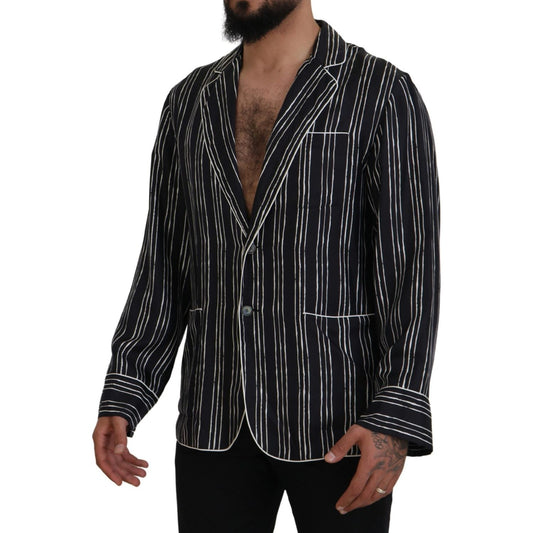 Dolce & Gabbana White Black Striped Slim Fit Jacket Blazer