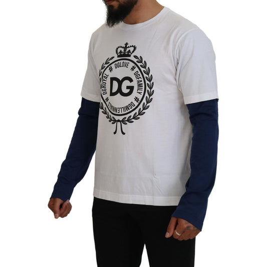 Dolce & Gabbana White Blue DG Crown Pullover Sweater