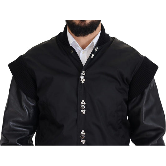 Dolce & Gabbana Black Nylon Crystals Coat Buttons Jacket