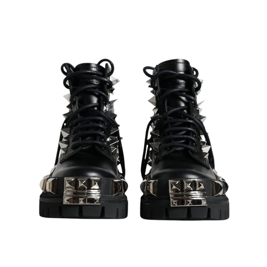 Dolce & Gabbana Black Leather Studded Trekking Boots Shoes