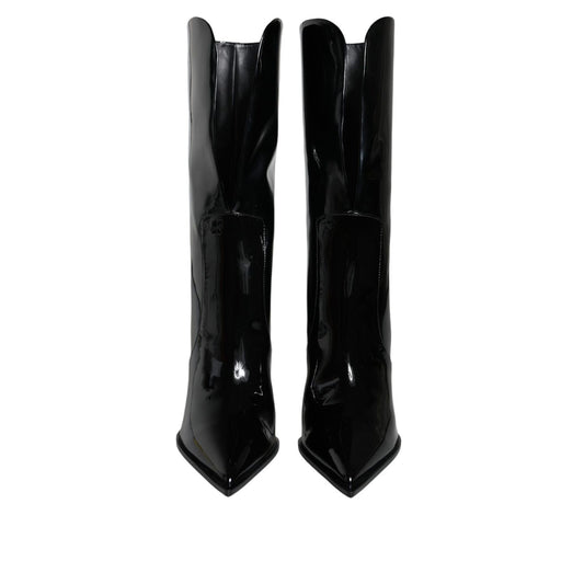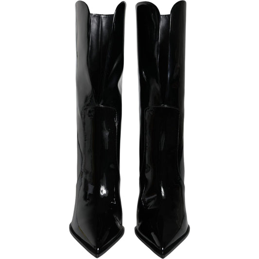 Dolce & Gabbana Black Patent Leather Mid Calf Boots Shoes