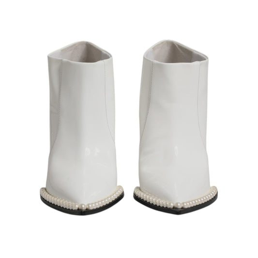 Dolce & Gabbana White Faux Pearl Leather Pointed Toe Ankle Boot Shoes