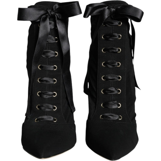 Dolce & Gabbana Black Mesh Stiletto Heels Ankle Boots Shoes