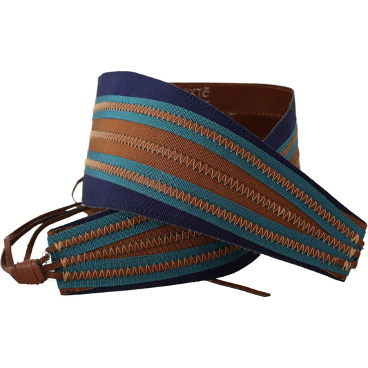 Scervino Street Brown Wide Leather Embroidered Design Logo Belt