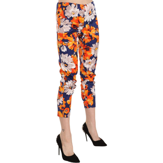 LANACAPRINA Blue Floral Print Skinny Slim Fit Trousers Pants