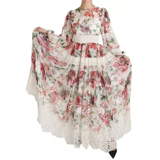 Dolce & Gabbana Multicolor Silk Floral Print Long Maxi Dress