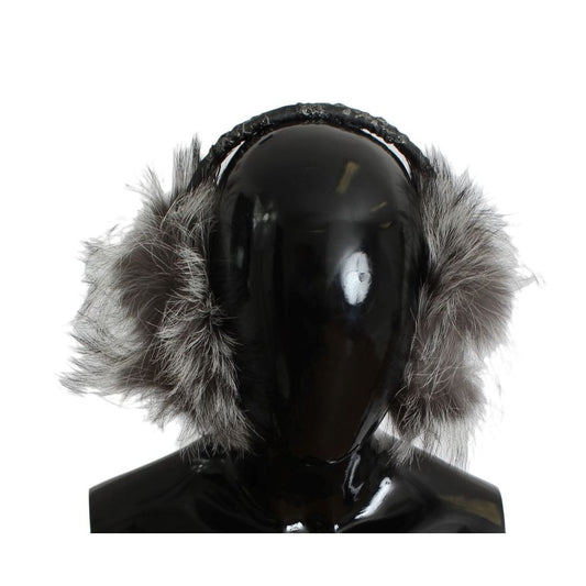 Dolce & Gabbana Gray Fox Fur Crystal Ear Muffs