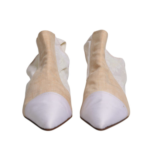 Dolce & Gabbana White Beige Leather High Heels Pumps Shoes