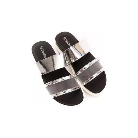 Dolce & Gabbana Silver Leather T-strap Heels Sandals Shoes