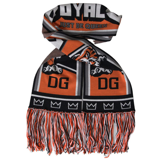 Dolce & Gabbana Multicolor Wool DG Royals Wrap Fringe Scarf
