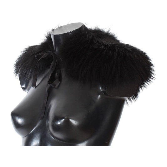 Dolce & Gabbana Black Fur Neck Collar Wrap Lambskin Scarf