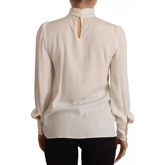 Dolce & Gabbana White Ascot Collar Long Sleeves Blouse Top