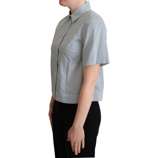 Dolce & Gabbana White Polka Dot Cotton Collared Shirt Top