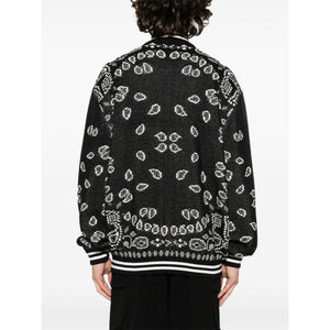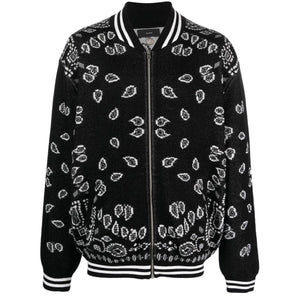 black/white cotton knitted construction paisley print striped edge band collar front zip fastening long sleeves two side slit pockets straight hem Bandana Piquet cotton bomber jacket Size and Fit - This piece fits true to size. We recommend you get your regular size. Model is 1,84m / 6ft 1in wearing size M