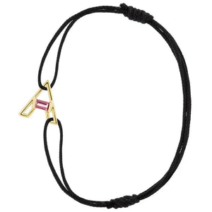 ALIITA BRACCIALI MOD. CBPUHA0013YG09K black cord bracelet with gold letter charm and pink gemstone.