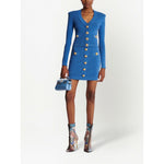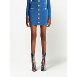 buttoned-short-knit-pencil-skirt from Balmain featuring blue, knitted construction, pencil silhouette, embossed gold-tone buttons, decorative button detailing, front flap pockets and short rear zip fastening. Embossed-buttons knit mini skirt Size and Fit - This piece fits true to size. We recommend you get your regular size. Model is 1,75m / 5ft 8in wearing size 36 (FR)