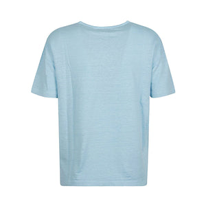 T-shirt tinta unita, maniche corte, girocollo e orlo dritto. Linen jersey t-shirt Size and Fit - This piece fits true to size. We recommend you get your regular size. Model is 1,75m / 5ft 8in wearing size 40 (IT)