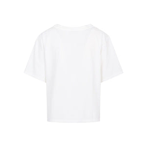 White T-shirt, half sleeves, crew neck, straight hem. Cotton t-shirt Size and Fit - This piece fits true to size. We recommend you get your regular size. Model is 1,75m / 5ft 8in wearing size 40 (IT)