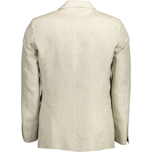 Gant Beige Linen Classic Jacket with Logo Detailing