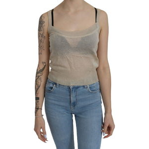 BYBLOS Beige Sleeveless Spaghetti Strap Tank See Through Top