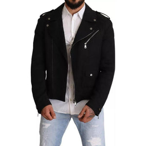 Dolce & Gabbana Black Brocade Full Zip Biker Coat Jacket