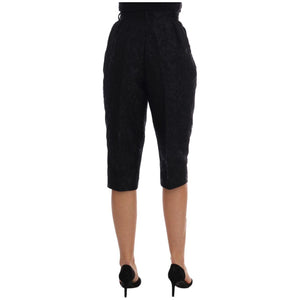 Dolce & Gabbana Black Brocade High Waist Capri Shorts