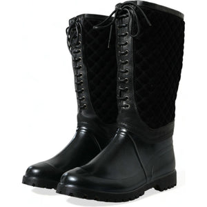 Dolce & Gabbana Black Chioggia Rubber Suede Rain Boots Shoes