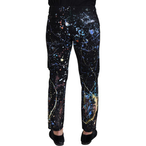 Dolce & Gabbana Black Cotton Color Splash Print Denim Jeans