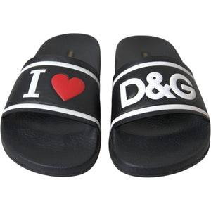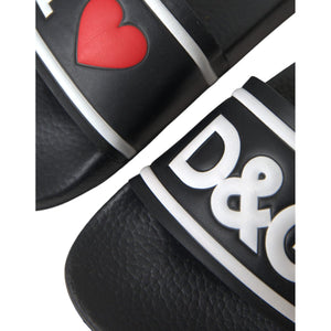 Dolce & Gabbana Black Leather I Love D&G Sandals Slides Shoes