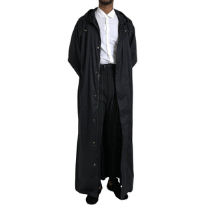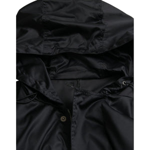 Dolce & Gabbana Black Polyester Hooded Long Windbreaker Jacket