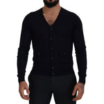 Dolce & Gabbana Blue Wool STAFF Down Cardigan Sweater