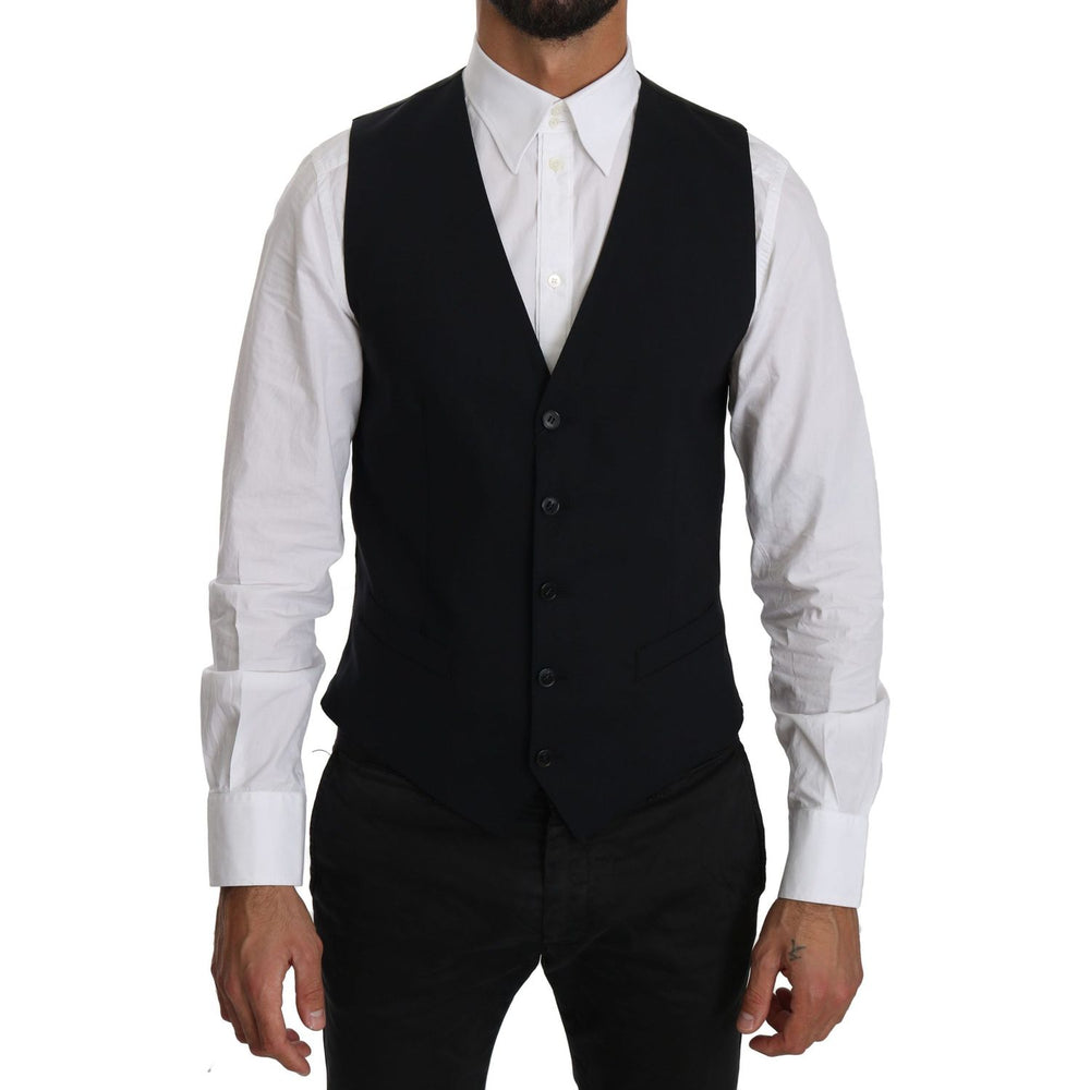 Dolce & Gabbana Blue Wool Waistcoat Formal Gilet Vest