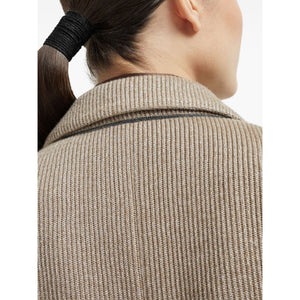 Back view of Brunello Cucinelli Sparkling cotton and viscose English rib knit blazer with monili in sesame beige